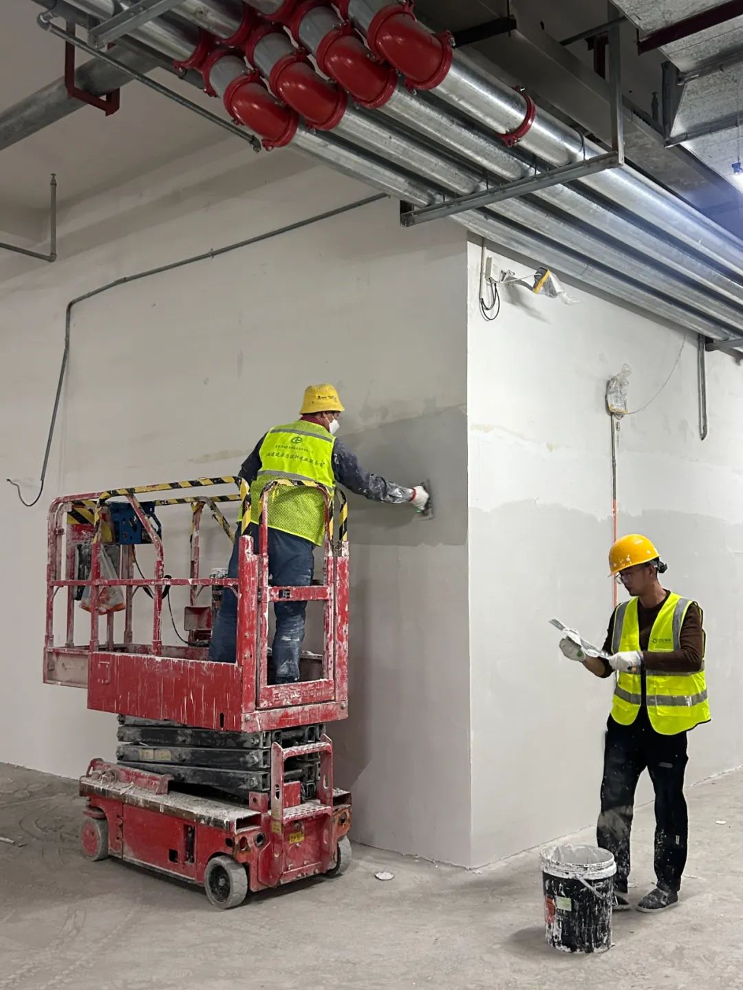 走進大華國際港的地下車庫,你會看到工人們正忙碌地刮墻、刮膩子,每一寸墻面都在他們的精心打磨下變得平整光滑。