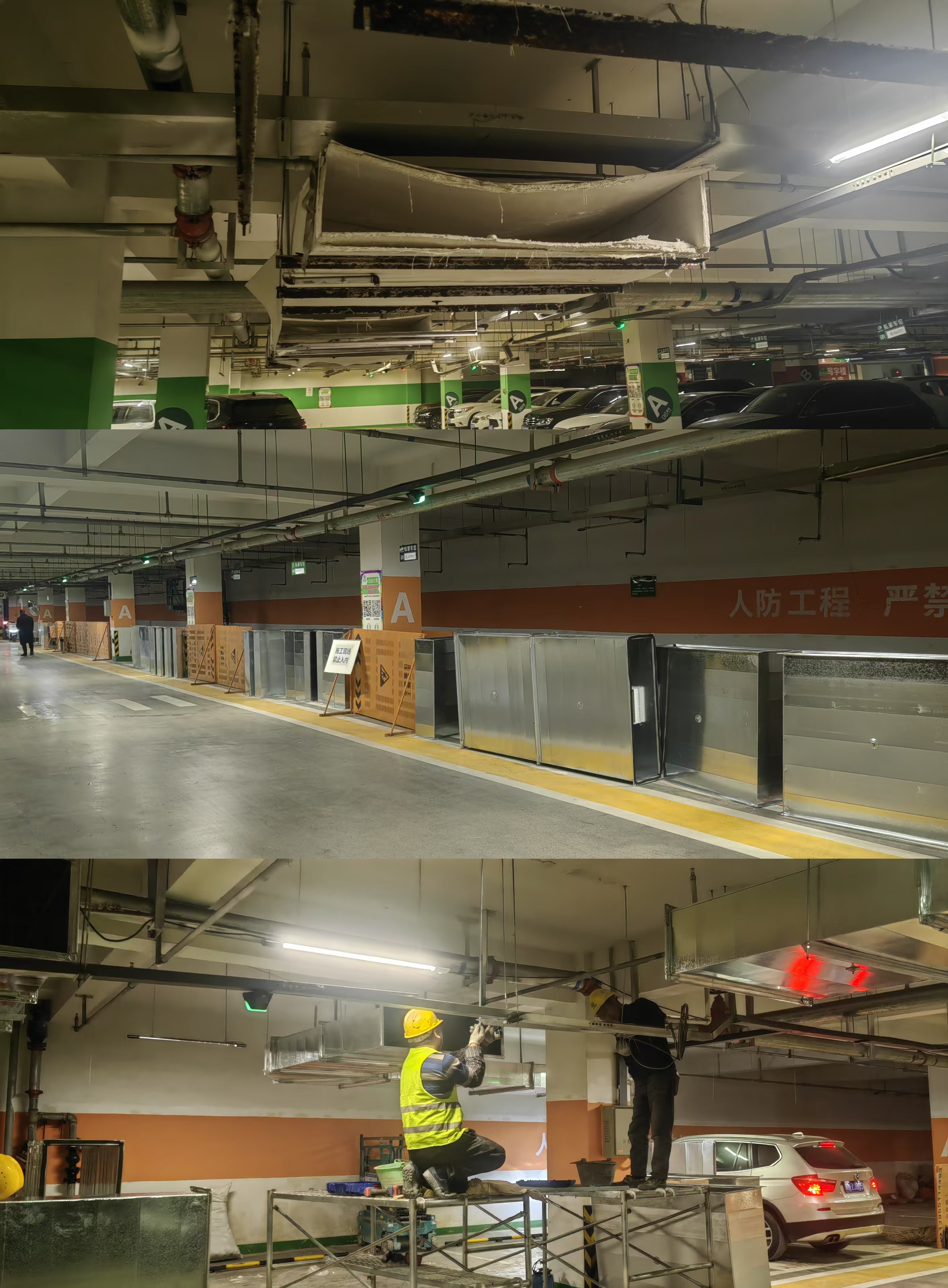 然而,我們的腳步并未停歇。今年11月中旬,我們?cè)俅螁?dòng)了停車場(chǎng)通風(fēng)管道的維修工程。由于原有的通風(fēng)管道老舊破損,存在嚴(yán)重的安全隱患,我們決定對(duì)其進(jìn)行全面煥新。