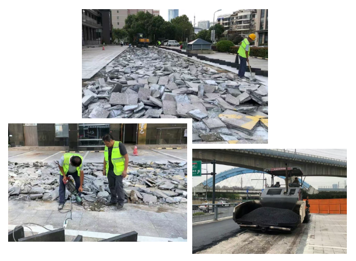 針對地磚路面區(qū)域,采用“磚改瀝青”工藝。首先對通道區(qū)域地磚進(jìn)行精密拆除,隨后進(jìn)行9厘米厚優(yōu)質(zhì)改性瀝青。這種工藝轉(zhuǎn)變解決了原有磚面易松動(dòng)、行車顛簸的問題。